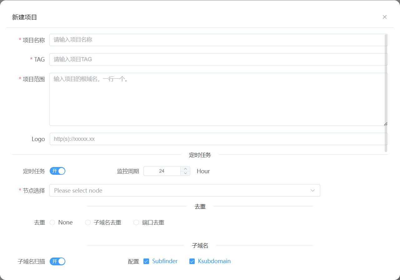 定时任务:开启定时任务后会定期进行对项目范围内的目标进行扫描。